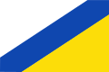 Bandera rectangular, de proporciones 2:3, formada por una franja diagonal azul de 1/3 del ancho, siendo blanco el triángulo del asta y amarillo el del batiente.